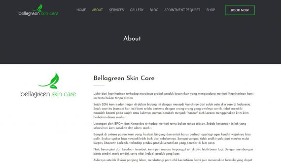 Portfolio Jasa Pembuatan Website Klinik Skin Care Bellagreen Skin Care