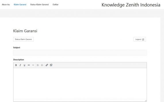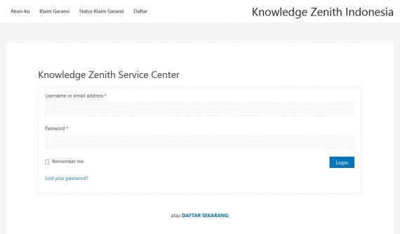 Website untuk submit Bantuan atau Garansi pada produk knowledge-zenith.id
